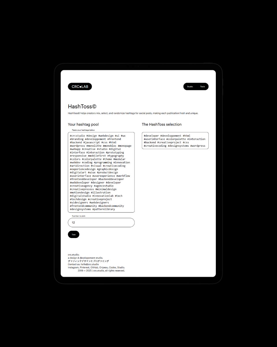 Discover HashToss©, a simple way to pick hashtags from long lists.